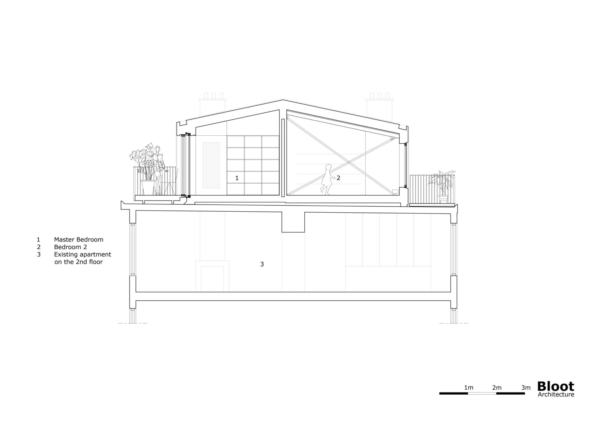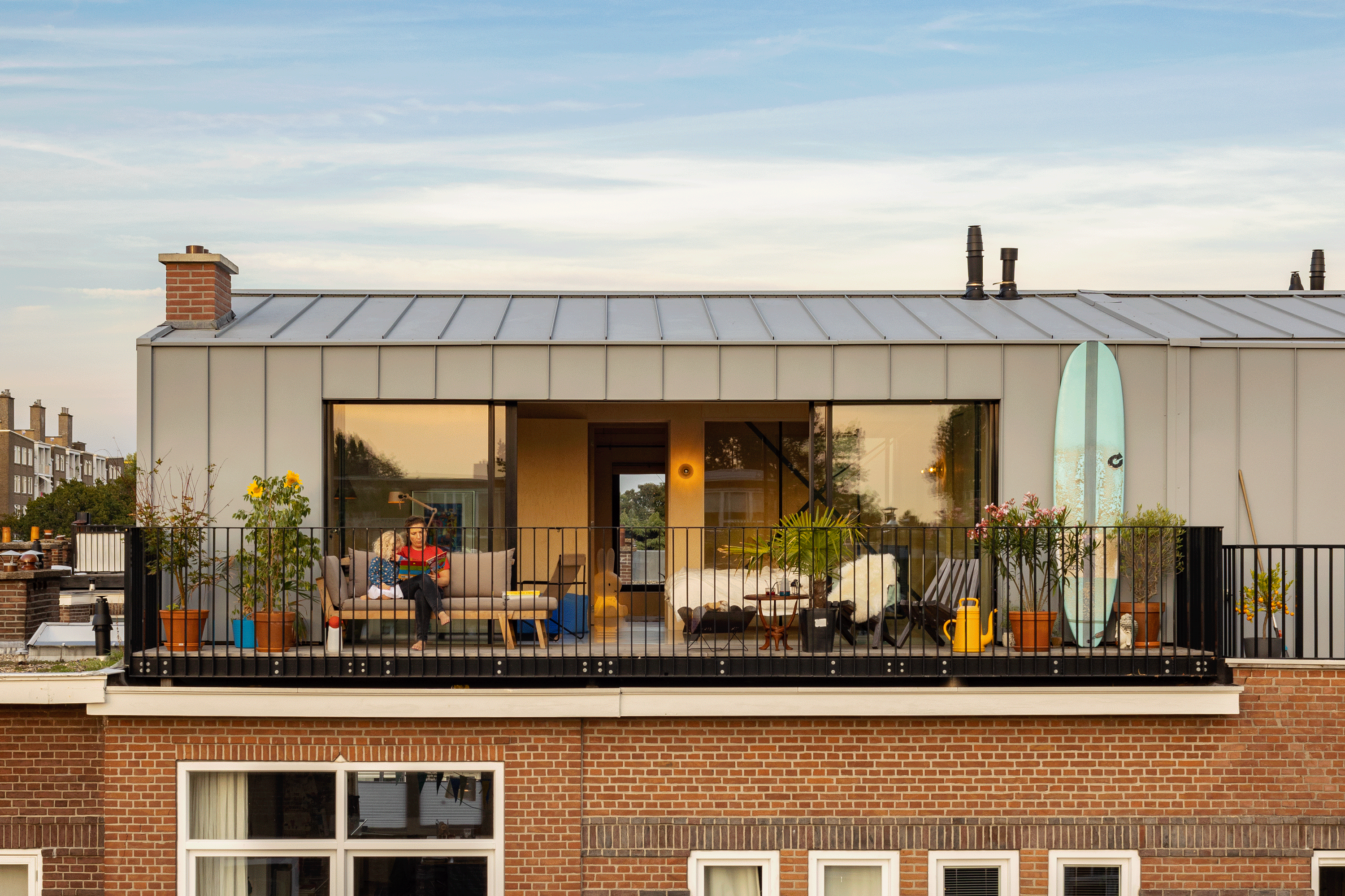 In de Bomenbuurt; een jaren 30 buurt in Den Haag gelegen tussen het centrum van Den Haag en het strand, heeft de architect en oprichter van Bloot Architecture voor zijn gezin een dakopbouw bovenop hun bestaande appartement ontworpen.